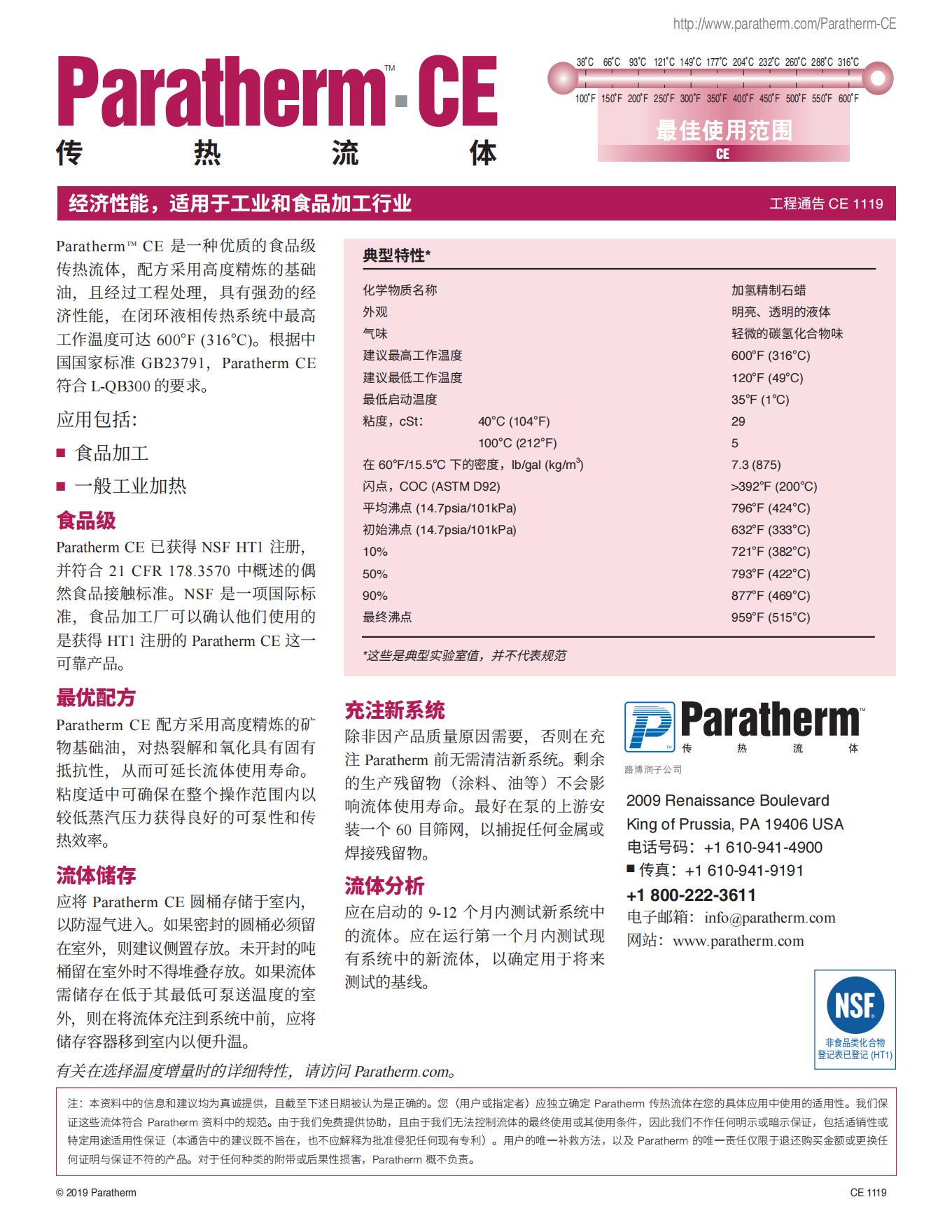 导热油-Paratherm CE食品级导热油